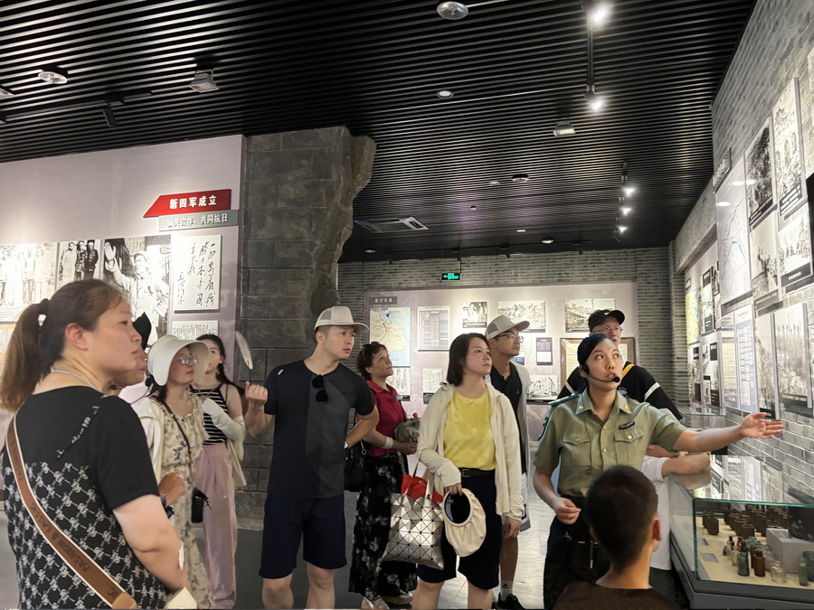 黨員們懷著崇敬的心情瞻仰了“蘇南抗戰勝利紀念碑”,體驗了“紀念碑前放鞭炮,紀念碑下聽軍號”的奇觀,并在紀念碑前合影留念。隨后,在新四軍紀念館,黨員們聆聽了“蘇南人民奮起抗擊日本侵略軍”“茅山抗日根據地的開辟”“茅山新四軍東進北上”“蘇南抗日根據地的艱苦堅持”“蘇南人民奪取抗日斗爭的勝利”五大部分內容講解,感受了以茅山為中心的蘇南抗日根據地的光輝歷程。